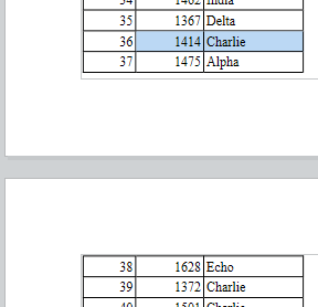 Notas: Pode desativar divisões automáticas em tabelas usando atributos de tabela wk page break inside row / wk page break inside table (ver Atributos 4D Write Pro) ou as ações table/avoidPageBreakInside e row/avoidPageBreakInside (ver Usando ações padrão).