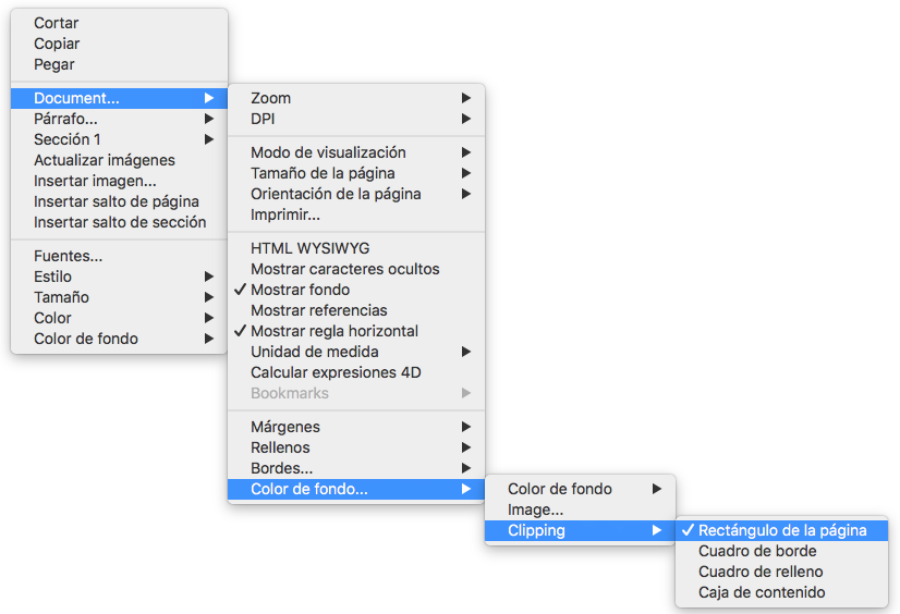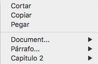 Este menú ofrece acceso a todas las funcionalidades de 4D Write Pro.