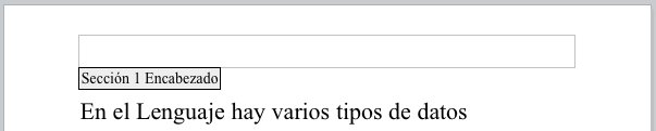 El nombre introducido se utiliza como el nombre de sección en todo el documento: