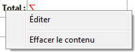 Si vous saisissez un libellé pour un calcul, sélectionnez une autre cellule sur la même ligne que celle affichant le calcul. Vous ne pouvez pas saisir de texte dans une cellule effectuant des calculs. Pour modifier un texte, double-cliquez dans la cellule pour passer le texte en édition. Vous pouvez également effectuer un clic droit afin d'afficher le menu contextuel vous permettant d'éditer ou d'effacer le contenu de la cellule :