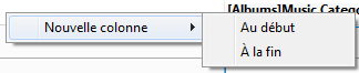 Chaque colonne présente dans l'état dispose d'un menu contextuel permettant d'insérer une colonne supplémentaire devant ou derrière elle, ainsi qu'au début ou à la fin du modèle. Un menu contextuel est également disponible dans l'angle supérieur gauche du modèle :