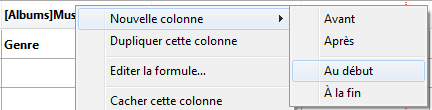 Il est possible de dupliquer une colonne existante via le menu contextuel de l'en-tête de la colonne : choisissez la commande Dupliquer cette colonne : une colonne identique est alors ajoutée à droite de la colonne d'origine.