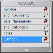 Tipo: muestra los campos ordenados en función del tipo por orden alfabético creciente.