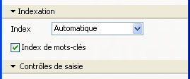 Les champs Alpha, Texte et Image peuvent comporter un type d’index spécifique : mots-clés.