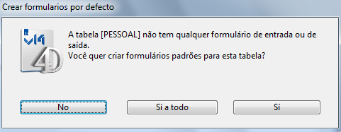 Se muestra la ventana de registros. 4D detecta que la tabla no dispone de ningún formulario y le pregunta si quiere que el programa los cree por usted.