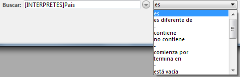 (*) Para cadenas, las búsquedas se basan en el alfabeto (donde a < b). Por ejemplo, una búsqueda de tipo nombre después de "don" encuentra Don Juan, Dumas, López, y así sucesivamente, pero no encuentra Alves o Dominick.