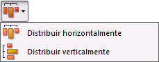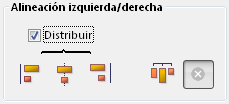 Horizontalmente, los iconos corresponden a las siguientes distribuciones: equidistante a los bordes izquierdos, centros (hor.) o bordes derechos de los objetos seleccionados.