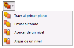 uno de los comandos Enviar al fondo, Traer al frente, Traer adelante y Enviar atrás en el menú Objeto,