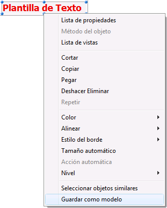 El comando Guardar como modelo, disponible en el menú contextual del editor cuando se hace clic sobre un objeto, guarda el objeto como modelo. Este modelo y sus propiedades se utilizarán para la creación de objetos del mismo tipo.