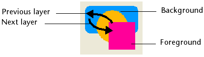 When ordering different levels, 4D always goes from the background to the foreground. As a result, the previous level moves the selection of objects one level towards the background. The next level moves the selection one level towards the foreground of the form.