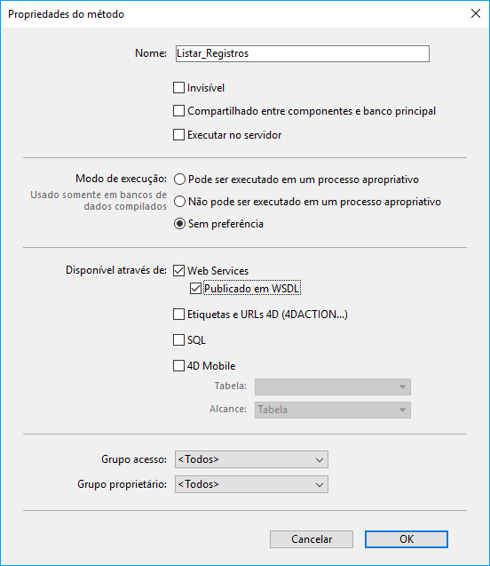 • Para publicar um Serviço Web 4D em modo DOC, só é necessário utilizar o seguinte URL para o WSDL: