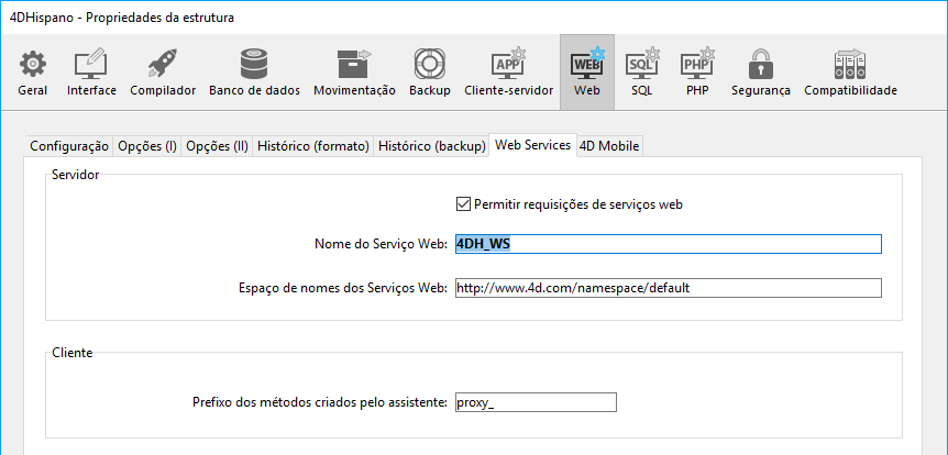 • A publicação de Serviços Web com 4D requer uma licença específica: a licença SOAP..