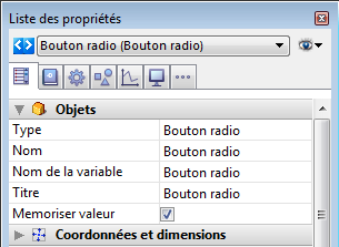 L'option Mémoriser valeur est disponible dans la zone "Objets" de la Liste des propriétés :