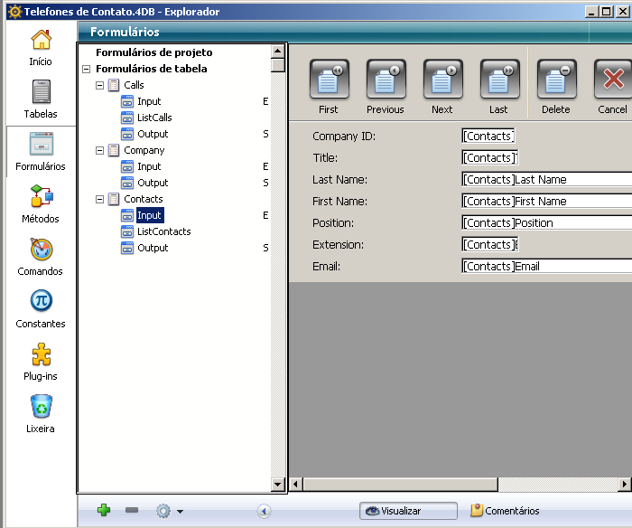 Para mais informação sobre a edição de formulários, consulte o capítulo Criar formulários.