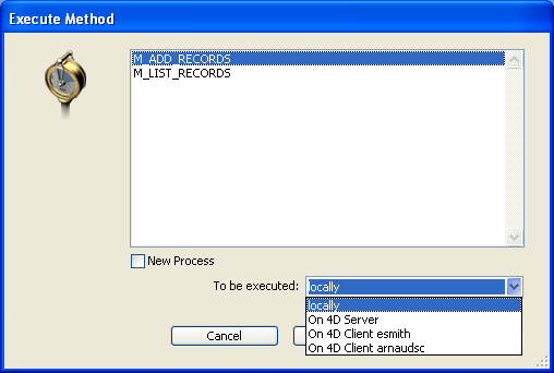 4D Server上でもクライアントマシンと同様の操作が可能です。さらにExecute on serverコマンドを使用すると、4D Serverマシン上でメソッドを実行できるユーザープロセスを開始できます。EXECUTE ON CLIENTを使用すれば異なるクライアント上の他のプロセスでメソッドを実行できます。 両ケースでこのメソッドはストアドプロシージャーと呼ばれ、(用語の濫用になりますが) サーバーマシンやクライアント上で開始されたプロセスもストアドプロシージャーと呼ばれます。