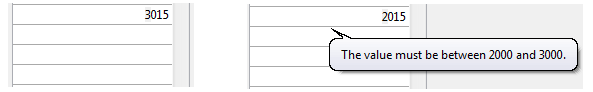 These attributes can be used to control the range of input values. When a cell is validated (when it loses the focus), if the input value is lower than the min value or greater than the max value, then it is rejected. In this case, the previous value is maintained and a tip displays an explanation.
