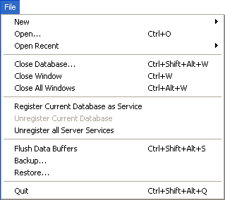 These commands can be used to open a database with 4D Server. The Open Recent> command displays a submenu listing databases that have been opened recently by 4D Server. To reset this menu, choose the Clear Menu command. The database opening commands are detailed in the Creating a New 4D Server Database section.