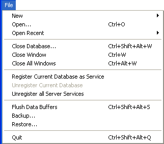 この階層コマンドにはサブメニューがあり、サーバマシン上でデータベースやデータファイルを新しく作成するために使用します。