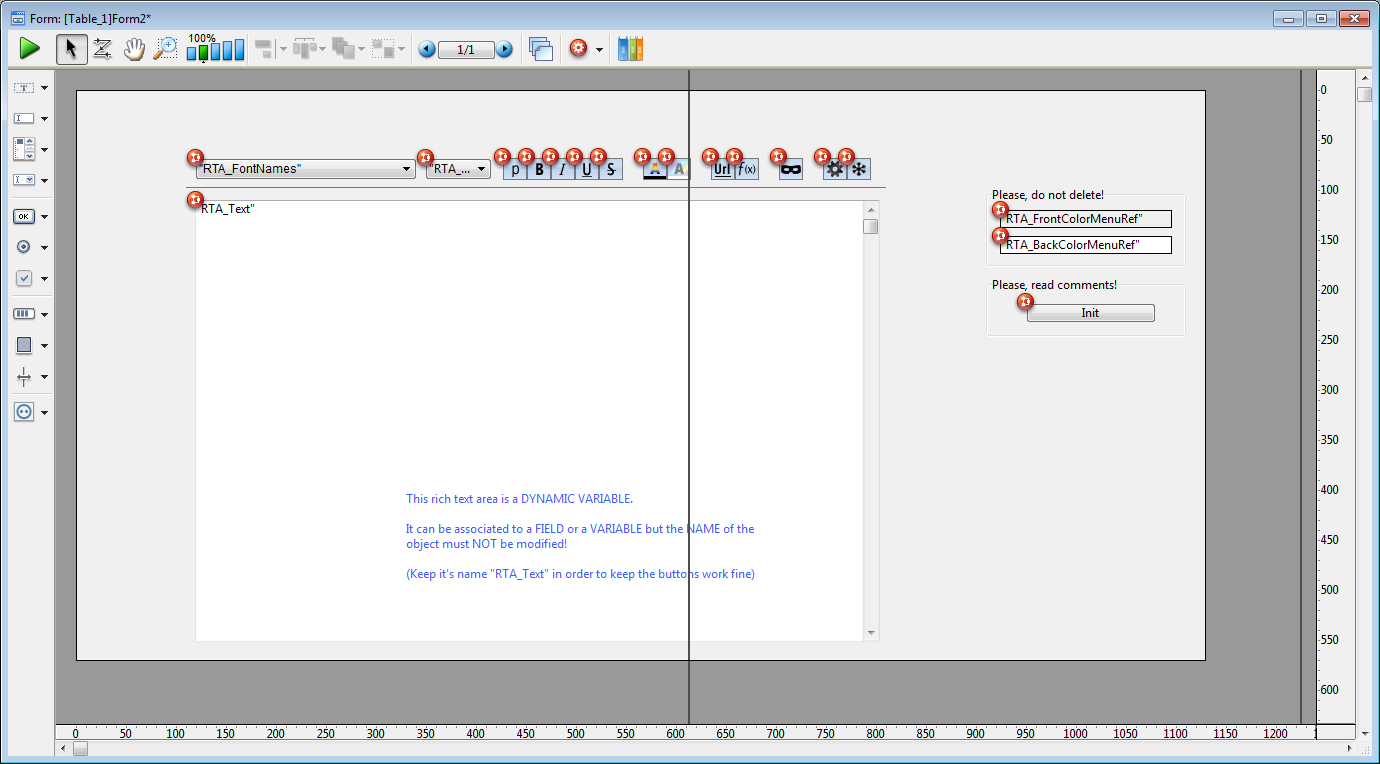 • com um subformulário associado 4D Write Pro contendo painéis de ferramentas para gerenciar os conteúdos da área: