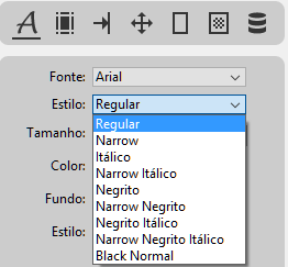 Os elementos disponíveis no menu Estilo variam em função da fonte selecionada: