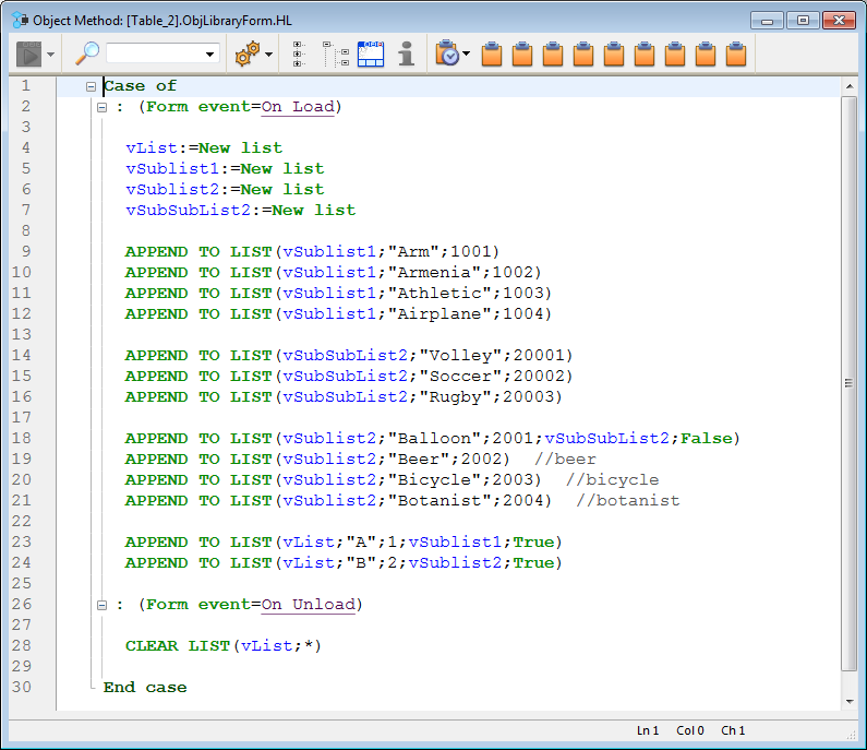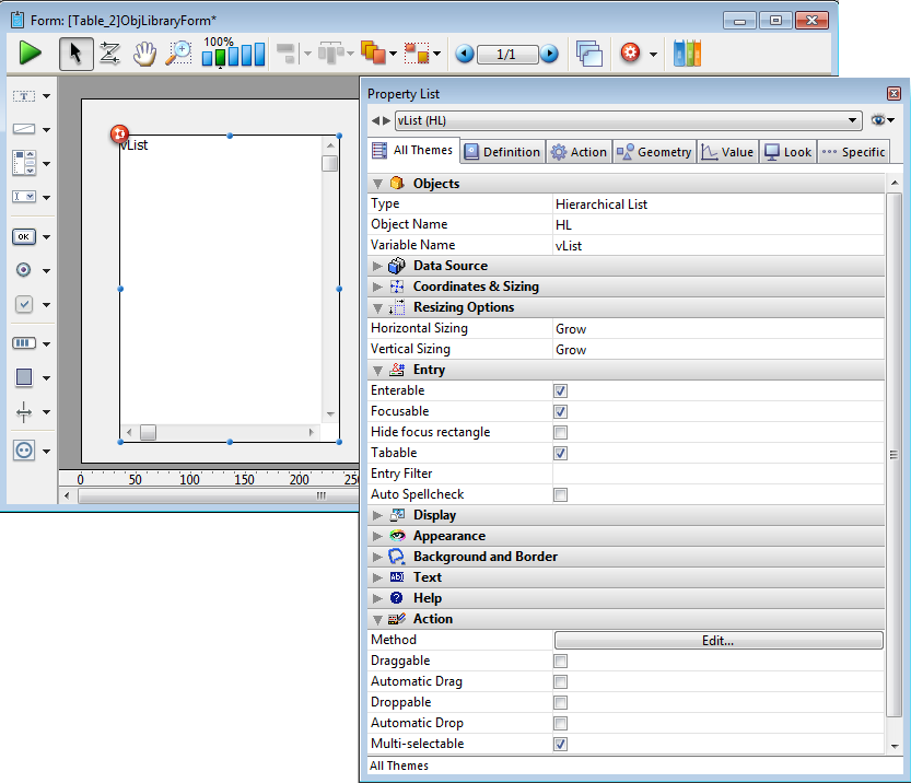Agrega uma lista hierárquica que inclui código de exemplo em seu método de objeto usado para implementar uma hierarquia básica de vários niveis. Pode utilizar a lista de propriedades para modificar suas propriedades.