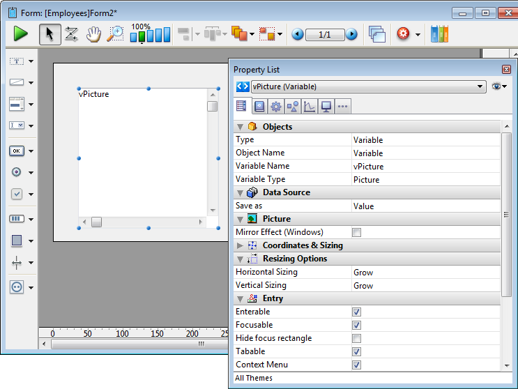 Adiciona uma área imagem que pode ser configurada utilizando a lista de propriedades, por exemplo, para agregar um menu contextual ou incluir um formato de visualização.