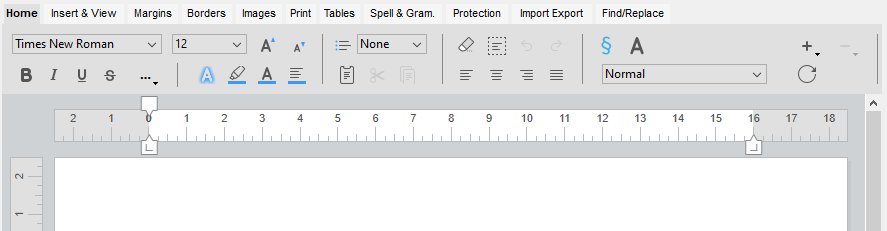 Este painel administra as propriedades de alinhação padrão do texto e define as margens da área 4D Write Pro.