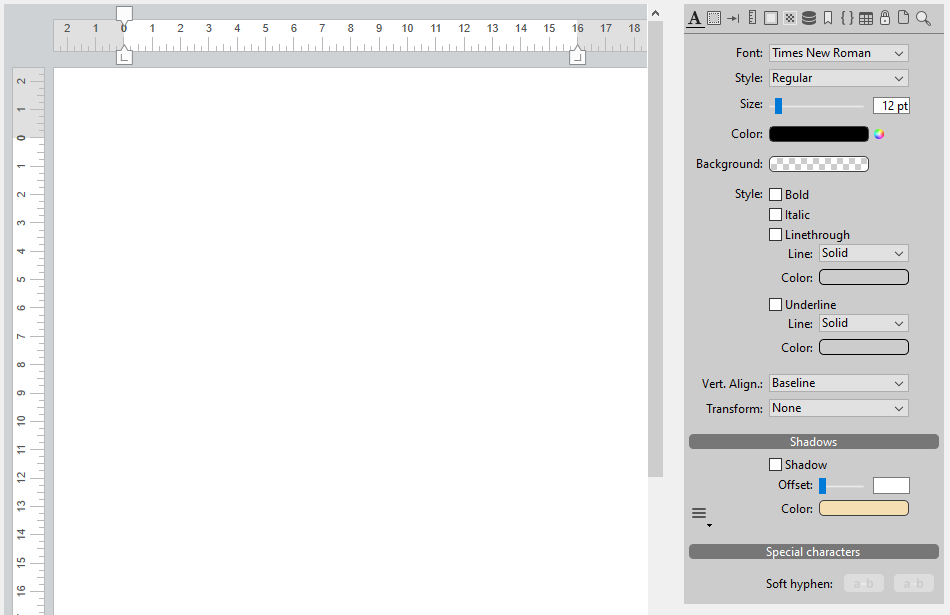 Adiciona uma área  de texto com estilo (variável) onde pode definir o tipo de fonte, seu tamanho e cor. Esta área pode ser redimensionada e tem uma barra de deslocamento vertical e um menu contextual. Pode modificar estas funcionalidades utilizando a lista de propriedades.