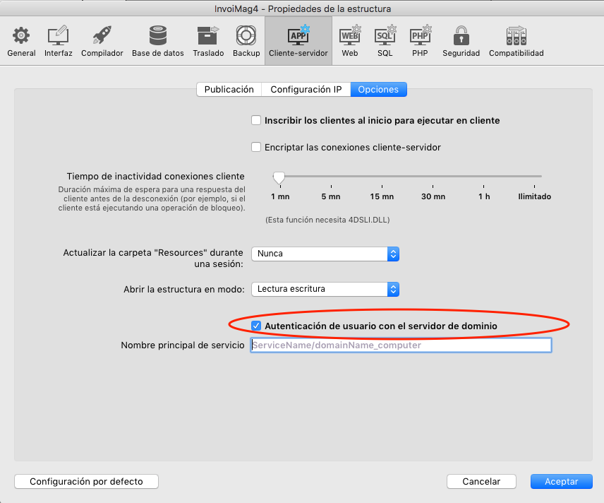 El usuario 4D Server esté en el dominio
