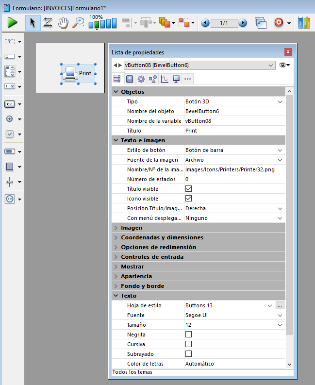 Para más información acerca del uso de los botones 3D en formularios, consulte Botones 3D, Casillas de selección 3D y Botones radio 3D.