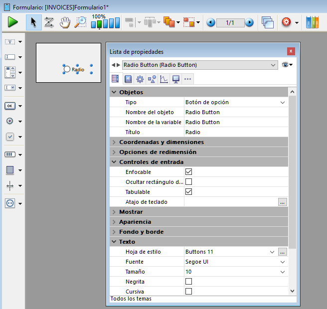Añade un botón de radio de tamaño pequeño. Puede utilizar la lista de propiedades para modificar sus propiedades.