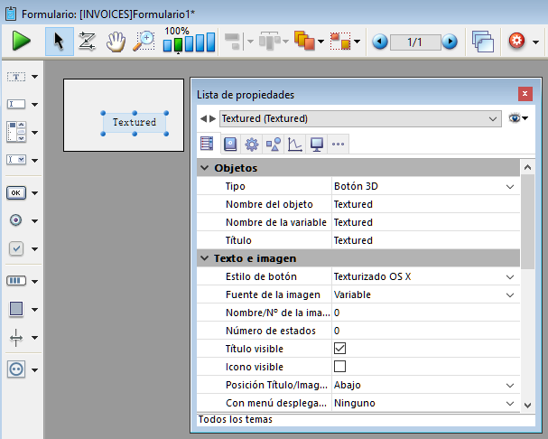 Añade un botón con textura 3D cuyo aspecto ha sido preformateado. Puede utilizar la lista de propiedades para modificar sus propiedades.