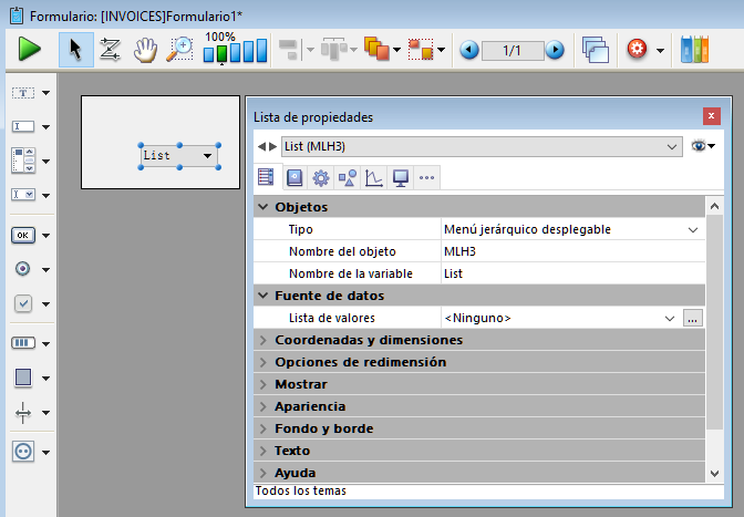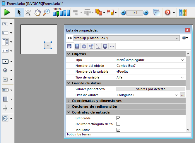 Para más información acerca del uso de menús pop-up en formularios, consulte Pop-ups/Listas desplegables.