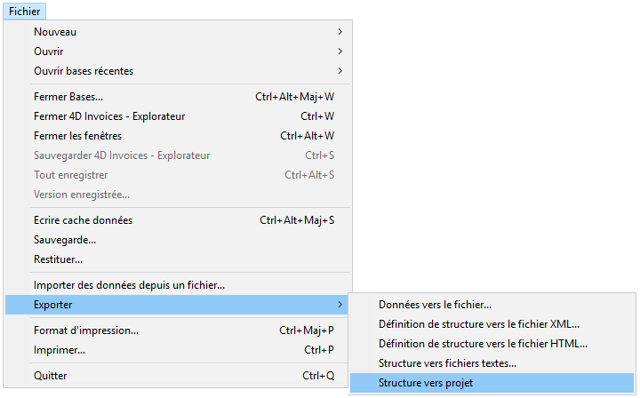 Sélectionnez Fichier > Exporter > Structure vers projet.