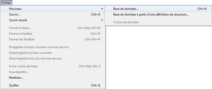 2. Choisissez la commande Nouveau>Base de données... dans le menu Fichier de 4D Server.