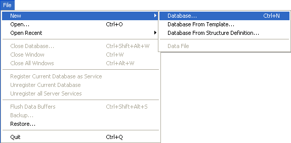 2. Selecione o comando Nova base de dados... no menu Arquivo de 4D Server.