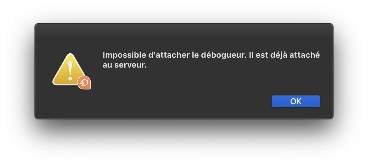 Si le débogueur est déjà attaché à un 4D distant ou à 4D Server (par défaut), aucune autre machine ne peut s'associer au débogueur.
