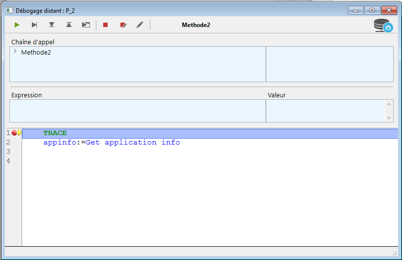 Le débogueur est alors associé au 4D distant :