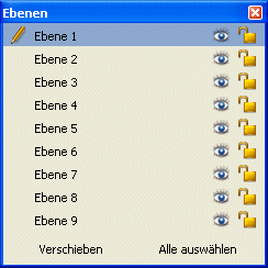 Hinweis: Die aktuelle Ebene, d.h. die in der Liste gewählte Ebene lässt sich nicht sperren.