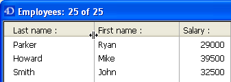 You can resize the output form columns (except when this possibility has been removed in the form editor). To do so, place the mouse cursor over the title area of the columns; the cursor changes in order to indicate that the column can be resized. You can then click and move the edge of the column in order to reduce or enlarge it: