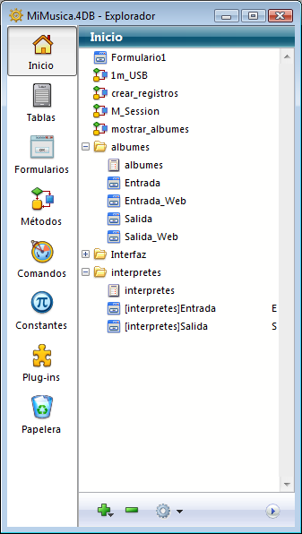 La página Inicio permite definir y utilizar las “carpetas” de objetos del Explorador de 4D.