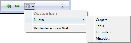 El comando Nuevo> de la página Inicio permite crear no sólo las carpetas, sino también tablas, formularios y métodos de proyecto. Cuando elija un subcomando de este tipo, vaya directamente a la caja de diálogo de creación del objeto.