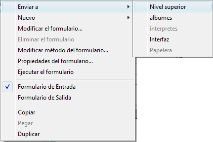Simplemente seleccione la carpeta donde quiere ubicar la selección. Si selecciona Nivel superior, la selección se ubicará en el primer nivel de la lista, fuera de cualquier carpeta (esta línea aparece inactiva cuando intenta mover un objeto que ya está en el primer nivel). Si elije Papelera, se elimina la selección (ver la sección anterior).