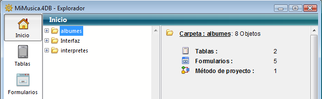 Los objetos de tipo Tabla, Formulario y Método proyecto pueden ubicarse en carpetas. También es posible crear subcarpetas en diferentes niveles.