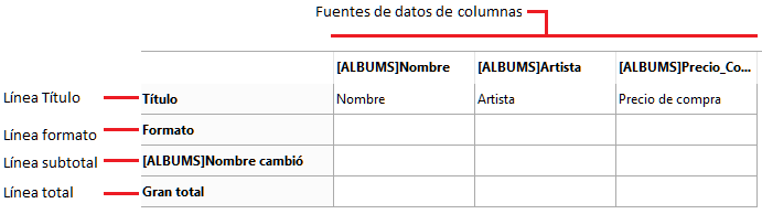 • Fuentes de datos de columnas: estos títulos indican la fuente de datos de cada columna.