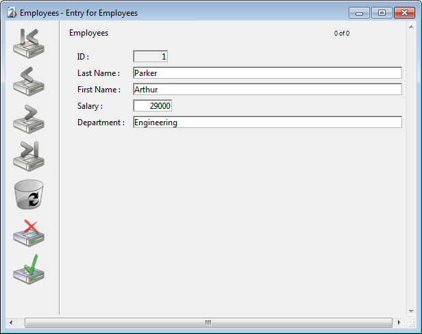 Una vez haya introducido el último registro, haga clic en el icono de cancelación (que contiene una cruz, sobre el ícono de validación) de manera que cancele el nuevo formulario de entrada vacío. Aparece el formulario de salida.