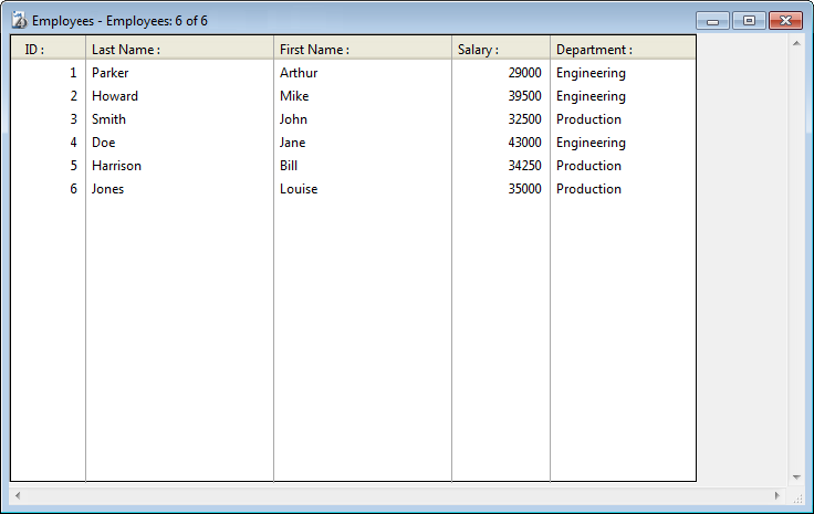 Una vez haya creado los registros en la tabla [Empleados], puede efectuar búsquedas, ordenaciones, impresiones, etc. con los registros. Por ejemplo, busquemos los empleados del departamento de Ingeniería.