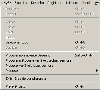 Estes comandos são encontrados no menu Edição no modo Desenho: