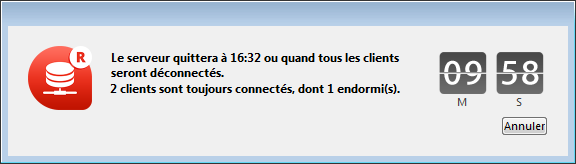 Lorsque vous choisissez l'une de ces options, la fenêtre suivante apparaît sur le serveur, elle indique le nombre de clients encore connectés :