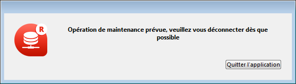 Une fenêtre similaire apparaît sur chaque poste distant 4D. Cette fenêtre est répétée ou mise à jour sur chaque poste client toutes les 20 secondes environ, afin de l'inciter à quitter. A l'issue du délai, le serveur quitte même si des clients sont encore connectés.